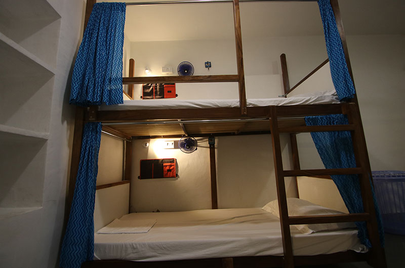 All bunks have – super cool block print curtains, personal reading light, wall fan, bottle holder and a utility pocket.