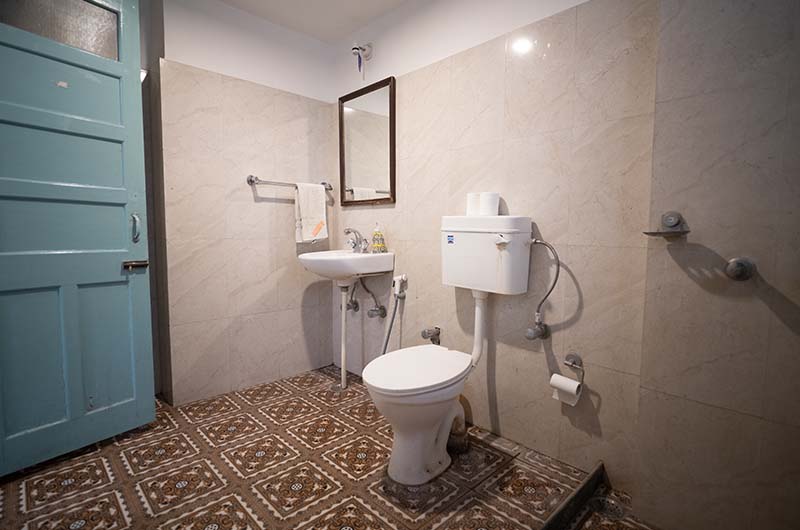 Air-conditioned, Single bed Room with attached toilet and bathroom accessed by the courtyard.